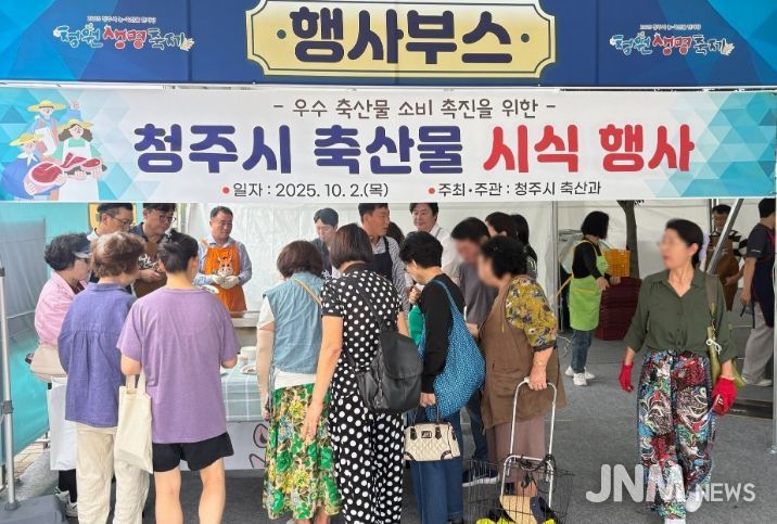 제이앤엠뉴스 | 청주시는 2일 청원생명축제 축산물판매장에서 축산물 소비촉진을 위한 시식 행사를 열고 축제 관람객을 대상으로 지역 생산 축산물의 우수성을 홍보했다.
