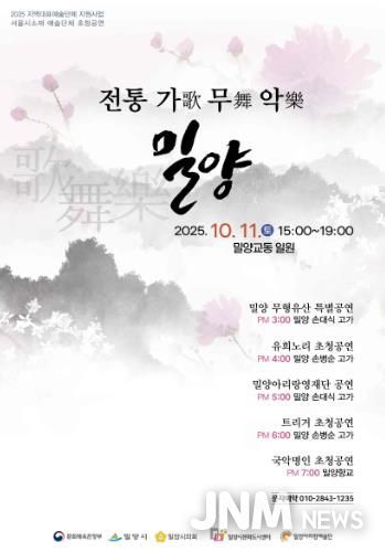 밀양시 관계자는 “전통예술의 감동을 함께 나누고, 우리 문화의 아름다움을 더욱 공유하는 시간이 될 것으로 기대한다”라며 “앞으로 밀양이 전통과 현대, 세대와 지역을 잇는 소통과 협업의 중심지가 되어, 문화예술의 지속 가능한 발전을 선도해 나가겠다”라고 말했다.