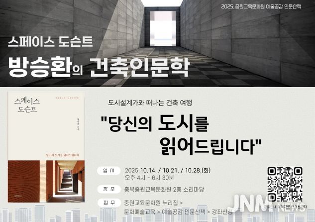 제이앤엠뉴스 | 충청북도교육청 직속기관 중원교육문화원(원장 배상근)은 교육공동체 구성원들의 인문적 소양과 예술적 감수성을 높이기 위해 운영중인 문화교육 프로그램 '예술공감 인문산책'의 10월 강연 수강생을 선착순 모집한다고 전했다.