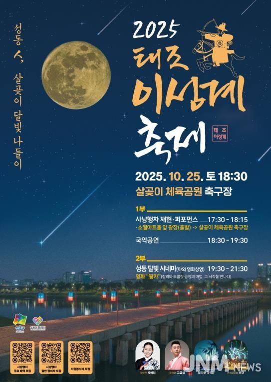 제이앤엠뉴스 | 서울 성동구는 오는 10월 25일 살곶이 체육공원 일대에서 '2025년 태조 이성계 축제'를 개최한다고 밝혔다.
