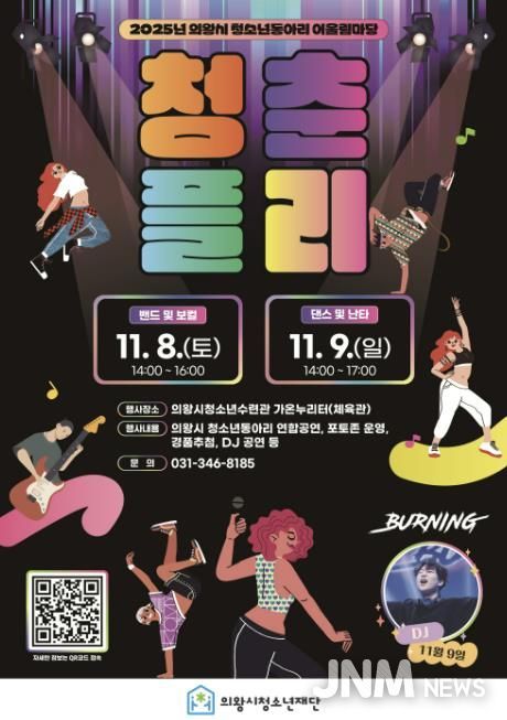 제이앤엠뉴스 | 의왕시청소년재단 산하 의왕시청소년수련관은 오는 11월 8일부터 9일까지 이틀간, 청소년 및 지역주민을 대상으로 의왕시 청소년동아리 어울림마당 '청춘플리'를 개최한다.
