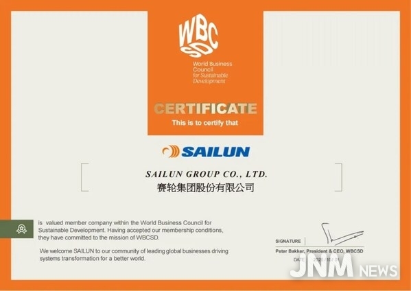 제이앤엠뉴스 | 베이징 2025년 11월 18일 -- 중국의 선두적인 타이어 제조기업 사일룬 그룹(Sailun Group Co., Ltd.)이 지속가능발전 세계경제협의회(WBCSD, World Business Council for Sustainable Development) 회원 자격을 공식적으로 획득했다.