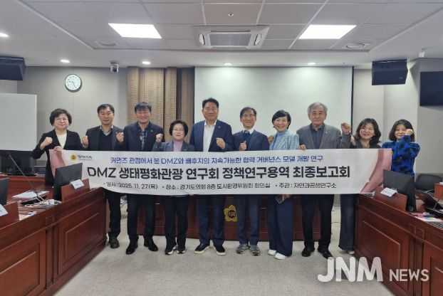 제이앤엠뉴스 | 경기도의회 의원연구단체인 DMZ생태평화관광 연구회(회장 오준환 의원)는 지난 27일 경기도의회 도시환경위원회 회의실에서 '커먼즈 관점에서 본 DMZ와 배후지의 지속가능한 협력 거버넌스 모델 개발 연구' 용역 최종보고회를 개최했다.