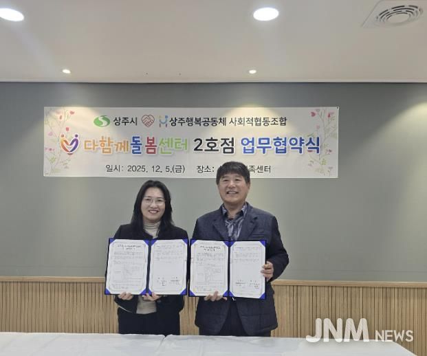 제이앤엠뉴스 | 상주시는 12월 5일 상주시가족센터에서 상주시 다함께돌봄센터 2호점 위수탁 협약식을 개최하고, 수탁기관으로 상주행복공동체 사회적협동조합을 최종 선정하여 협약을 체결했다.