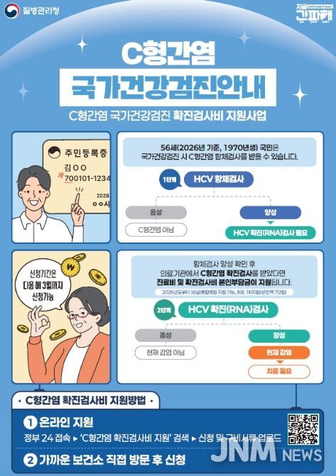 제이앤엠뉴스 | 경상남도는 2026년부터 국가건강검진 결과 C형간염 항체 양성 판정을 받은 56세 도민(2026년 기준 1970년생)을 대상으로 시행하는 확진 검사비 지원사업을 모든 의료기관으로 확대한다고 밝혔다.