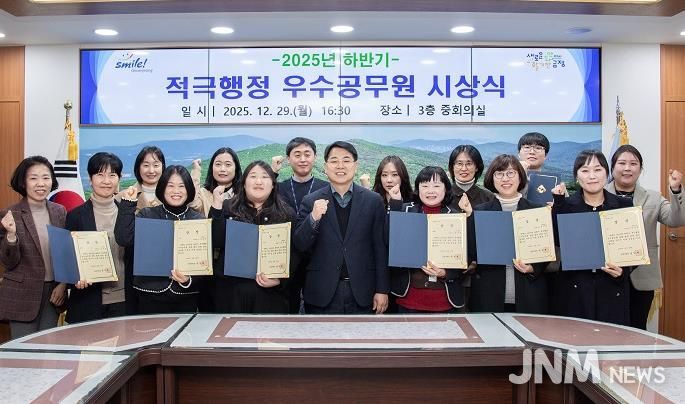 제이앤엠뉴스 | 부산시 금정구는 지난 24일 창의적이고 적극적인 업무 추진으로 구정 발전과 구민 편익 증진에 이바지한 직원 16명을 '2025년 하반기 적극행정 우수공무원'으로 선발했다고 밝혔다.