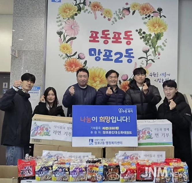 이번에 전달된 라면은 망포용인대신화태권도에 다니는 아이들이 자발적으로 모은 기부 물품으로, 연말을 맞아 이웃과 따뜻한 나눔을 나누기 위해 마련됐다.
