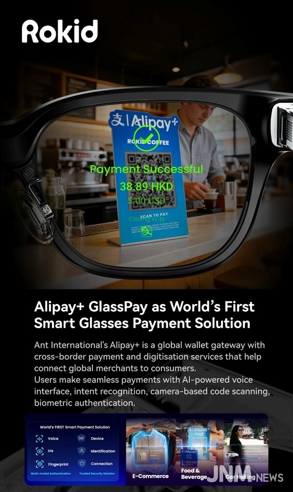 제이앤엠뉴스 | 라스베이거스 2026년 1월 9일 -- 인간과 컴퓨터 간 상호작용과 증강현실 분야를 선도하는 기업 로키드(Rokid)가 글로벌 디지털 결제, 디지털화 및 금융 기술을 선도하는 기업 앤트 인터내셔널(Ant International)과 전략적으로 협력하여 최근 CES 2026에서 전 세계 최초로 공개된 세계 첫 오픈 생태계 AI 스마트 글래스 Rokid GlassesRokid Ai Glasses Style에 결제 기능을 탑재한다고 밝혔다. 이는 AI 기반 웨어러블 기술의 실제 활용 분야를 확대하기 위한 포석이다.