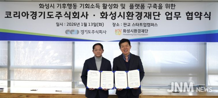 제이앤엠뉴스 | 경기도주식회사는 13일 경기도 성남시 판교 스타트업캠퍼스에서 화성시환경재단과 ‘기후행동 기회소득 활성화 및 화성시 플랫폼 구축을 위한 업무협약’을 체결했다.