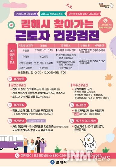 제이앤엠뉴스 | 김해시는 찾아가는 근로자 건강검진을 실시한다고 20일 밝혔다.