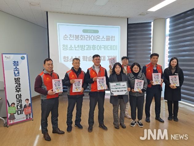 제이앤엠뉴스 | 순천봉화라이온스클럽(회장 조동천)은 지난 19일 순천시 청소년문화의집에서 청소년방과후아카데미 초등·중등 청소년들의 학습 지원을 위해 100만 원 상당의 교재를 전달했다.
