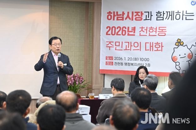 제이앤엠뉴스 | 이현재 하남시장은 20일 감일동 행정복지센터에서 열린 ‘주민과의 대화’에서 “방아다리길 연결도로 개통과 연계한 버스 노선 개편 및 생활 SOC 확충을 통해 감일신도시 주민들의 정주 여건을 개선하겠다”라고 밝혔다.
