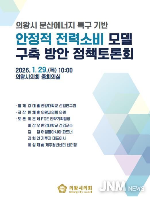제이앤엠뉴스 | 의왕시의회는 오는 29일 오전 10시, 시의회 중회의실에서 '의왕 분산에너지 특구 기반 안정적 전력소비 모델 구축 방안 정책토론회'를 개최한다고 밝혔다.