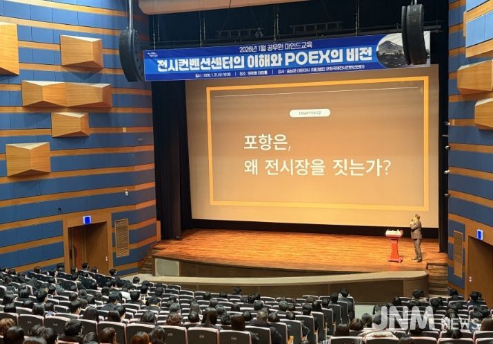 이번 교육은 송남운 (재)포항국제전시컨벤션센터 대표이사를 초청해 공직자의 산업 이해도를 높이고 포항국제전시컨벤션센터(POEX)의 역할과 발전 방향을 공유하는 자리로 마련됐다.
