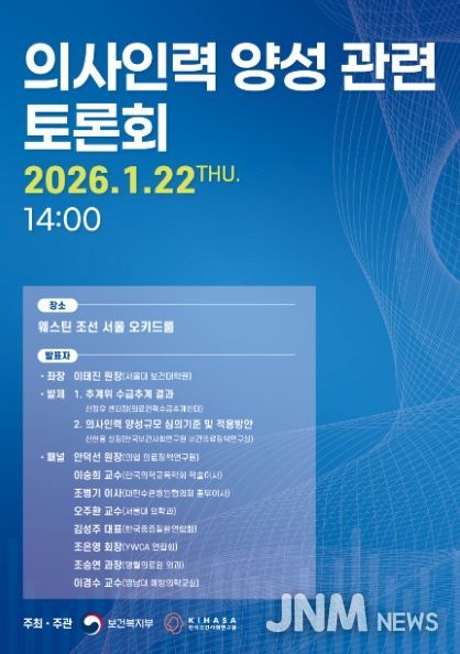 제이앤엠뉴스 | 보건복지부는 1월 22일 오후 2시 웨스틴 조선 서울(서울 중구 소재)에서 2027학년도 이후 의사인력 양성규모 결정과 관련하여 폭넓은 의견수렴을 위해'의사인력 양성 관련 토론회'를 개최했다.
