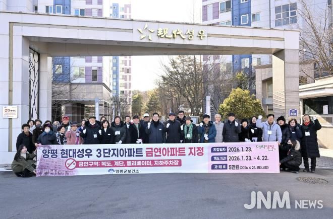 이번에 금연아파트로 지정된 현대성우 3단지 아파트는 복도, 계단, 엘리베이터, 지하주차장 전 구역이 금연구역으로 지정됐다. 양평군은 금연아파트 현판과 안내 현수막을 설치하고 3개월간 주민 홍보 및 계도 기간을 운영할 계획이며, 이후 2026년 4월 23일부터 금연구역 내 흡연 적발 시 5만 원의 과태료를 부과된다.