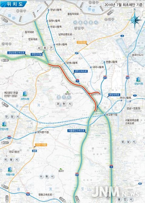 제이앤엠뉴스 | 경부고속도로 양재 나들목(IC) 인근의 만성적인 교통정체를 완화할 새로운 대안 노선이 본격 추진된다.