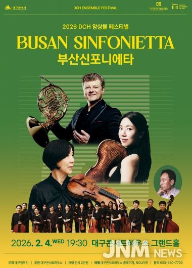 제이앤엠뉴스 | 대구콘서트하우스가 주최하는 2026 DCH 앙상블 페스티벌이 오는 2월 4일 저녁 7시 30분, 대구콘서트하우스 그랜드홀에서 부산신포니에타의 개막 공연과 함께 본격적인 막을 올린다.