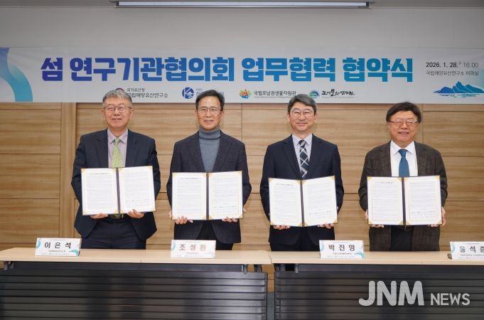 제이앤엠뉴스 | 기후에너지환경부 산하 국립호남권생물자원관(관장 박진영)은 국립해양유산연구소, 한국섬진흥원, 국립목포대학교 도서문화연구원과 함께 2026년 1월 28일 국립해양유산연구소(전남 목포시 소재)에서 '섬 연구기관 협의회' 출범을 위한 업무협약을 체결했다.