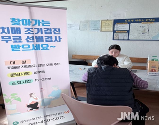제이앤엠뉴스 | 무안군은 겨울철 농한기를 맞아 지역 어르신들의 치매를 조기에 발견하고 적절한 치료로 연계하기 위해 무료 치매 검진을 집중 실시하고 있다고 밝혔다.