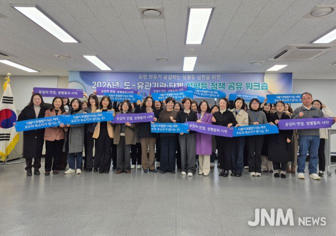 제이앤엠뉴스 | 제주특별자치도는 30일 제주복지이음마루에서 도내 성평등·여성 관련 유관기관 및 단체와 함께 도민 모두가 공감하는 성평등 실현을 위한 ‘2026년 도–유관기관·단체 성평등 정책 공유 워크숍’을 개최했다고 밝혔다.