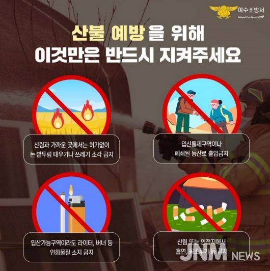 제이앤엠뉴스 | 여수소방서(서장 서승호)는 겨울철 건조한 날씨와 강풍으로 산불 발생 위험이 높아짐에 따라 산불 예방을 위한 안전수칙 홍보 활동을 강화하고 있다고 밝혔다.