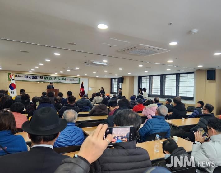 제이앤엠뉴스 | (사)경북시각장애인연합회 상주지회는 지난 2.2.에 상주명실상감한우 세미나실에서 회원과 내빈 등 100여 명이 참석한 가운데 2026년 정기총회를 개최하여 지난 한 해 동안의 사업 성과를 돌아보고, 새해 추진할 주요 사업과 운영 방향을 논의했다.