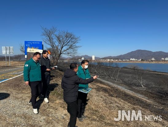 제이앤엠뉴스 | 창원특례시는 3일 오전 대산면 수산대교 인근을 방문해, 지난 2일 발생한 화재 현장을 점검하며 피해 상황을 살폈다.