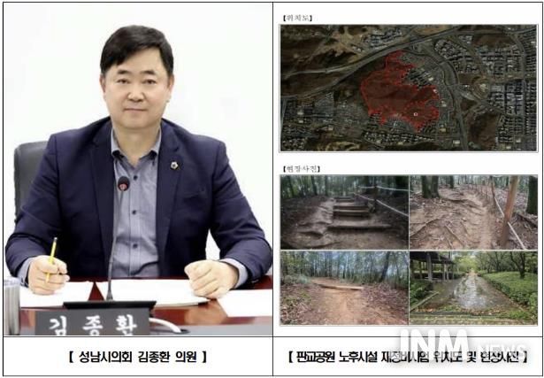 제이앤엠뉴스 | 성남시의회 국민의힘 김종환 의원(판교·백현·운중·대장동, 예산결산특별위원장)은 분당구 판교동 판교공원 일원 노후 산책로와 바닥포장 등을 정비하는 재정비공사가 본격 추진됨을 밝혔다.