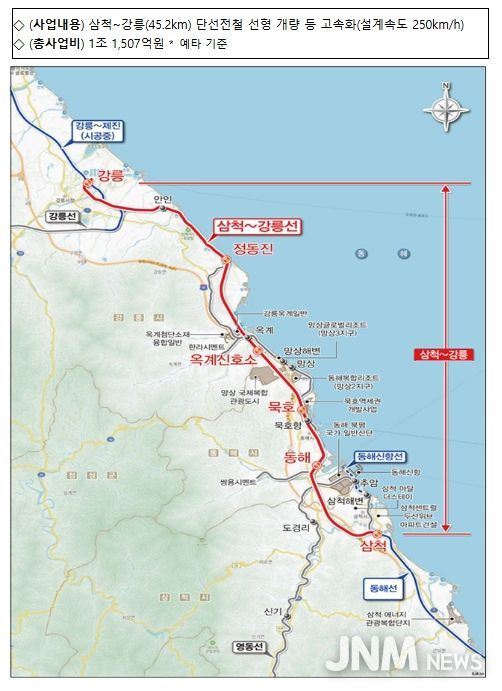 제이앤엠뉴스 | 국토교통부는 2월 12일 동해선 삼척-강릉 철도 고속화 사업과 부산도시철도 정관선 건설사업이 사업 타당성을 확보하여 예비타당성조사를 통과했다고 밝혔다.