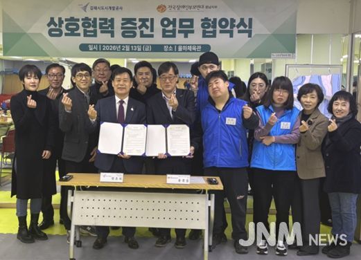 제이앤엠뉴스 | 김해시도시개발공사 스포츠센터 운영부는 지난 13일, 율하체육관에서 (사)전국장애인부모연대 경남지부와 발달장애인 현장 중심 직업훈련 및 일자리 확대를 위한 업무협약을 체결했다.