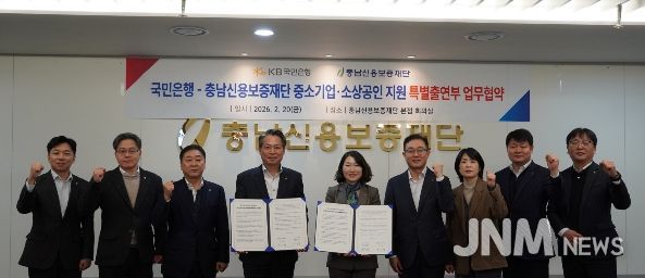 제이앤엠뉴스 | 충남신용보증재단은 2월 20일 충남경제 활력 제고와 지역 중소기업·소상공인의 경영안정 지원을 위해 KB국민은행과 '중소기업·소상공인 금융지원 특별출연 업무협약'을 체결하고, 총 525억 원 규모의 신용보증 지원에 나섰다.