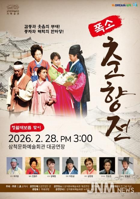 제이앤엠뉴스 | 삼척시는 오는 2월 28일 오후 3시 삼척문화예술회관 대공연장에서 악극 ‘폭소 춘향전’을 초청해 기획공연으로 선보인다고 밝혔다.