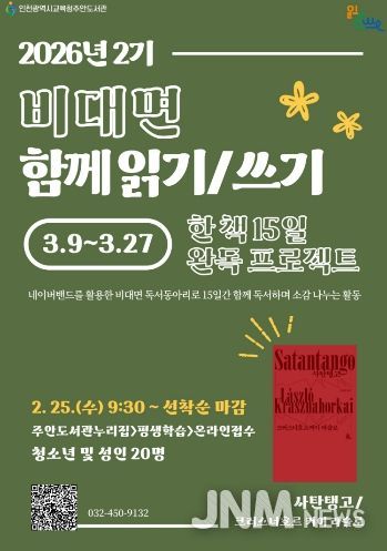제이앤엠뉴스 | 인천광역시교육청주안도서관은 오는 25일부터 비대면 독서동아리 ‘한 책 15일 완독 프로젝트’ 2기 참여자를 모집한다.