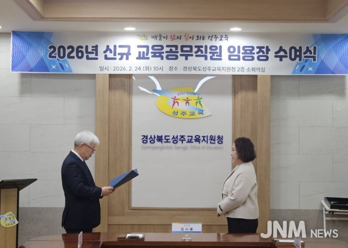 제이앤엠뉴스 | 경상북도성주교육지원청은 2월 24일 성주교육지원청 본관 소회의실(2층)에서 3월 1일자 교육공무직원 조리원 직렬 1명에 대한 임용장 수여식을 개최했다.