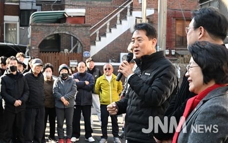 제이앤엠뉴스 | 오세훈 서울시장이 27일 오후 송파구 풍납동 483-10 일대 모아타운 사업 현장을 방문해 주민들과 직접 소통하며 사업 진행 상황을 확인했다.