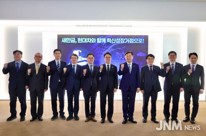 현대차그룹은 새만금에 9조원을 투입해 로봇 제조공장, AI 데이터센터, 수전해 플랜트 등 인공지능과 수소 기반의 도시 조성을 추진할 계획임을 밝혔다.