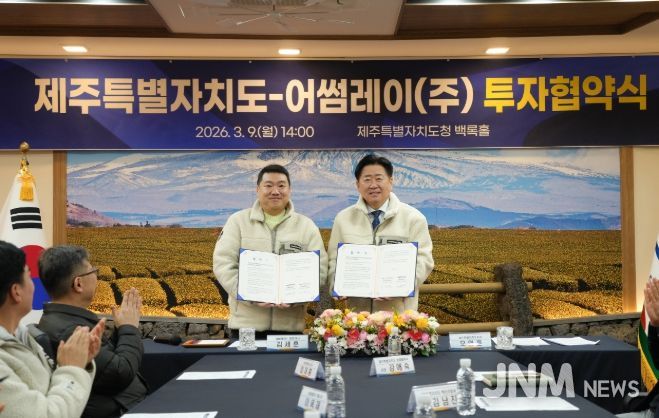 제이앤엠뉴스 | 제주특별자치도는 9일 도청 백록홀에서 첨단 신소재 기업 어썸레이㈜와 투자협약을 맺었다. 이번 협약은 어썸레이의 본사 이전을 계기로 우주, 항공, 방위산업 등 신산업 분야에서 제주를 성장 거점으로 삼겠다는 취지다.