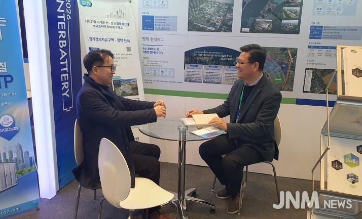제이앤엠뉴스 | 경기경제자유구역청이 서울 코엑스에서 열리는 '인터배터리 2026'에 참가해 배터리 첨단소재 분야 기업 유치 활동을 전개하고 있다.