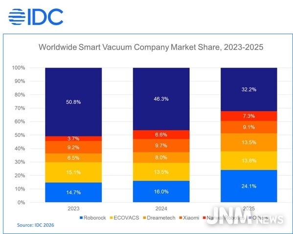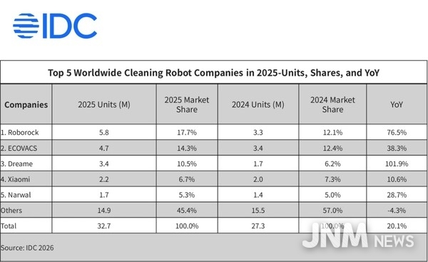 IDC 분석은 빠른 제품 고도화, AI 발전, 해외 시장으로 확장하는 중국 브랜드의 영향력 증가에 힘입어 글로벌 경쟁 구도가 빠르게 재편되고 있음을 보여준다. 이러한 도전적인 환경 속에서 로보락은 2023년부터 1위를 유지해 온 로봇 청소기 부문뿐만 아니라, 로봇 청소기, 로봇 잔디깎이, 기타 가정용 청소 제품을 포함한 더 넓은 제품 카테고리에서 경쟁하는 모든 업체를 제치고 처음으로 글로벌 출하량과 시장 점유율 1위를 차지했다.