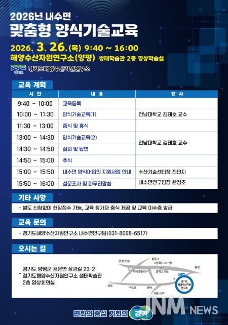 제이앤엠뉴스 | 경기도해양수산자원연구소가 내수면 양식 어업인을 대상으로 스마트 수산양식 기술 교육을 진행한다.