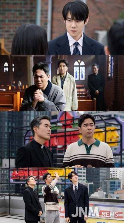 또 다른 스틸컷에서는 신이랑, 윤봉수, 신부 마태오가 옥천빌딩 옥상에서 만나는 모습이 포착됐다. 이 장소는 신이랑이 억울하게 죽은 망자 이강풍(허성태)을 배웅했던 곳으로, 극 중 중요한 공간이다. 귀신을 보는 변호사 신이랑, 귀신을 두려워하는 윤봉수, 전 무속인 출신 신부 마태오가 함께 힘을 합치는 모습이 그려질 예정이다.