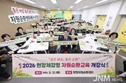제이앤엠뉴스 | 양평군이 지난 12일 양평자원순환센터에서 '2026 현장 체감형 자원순환교육'의 시작을 알리는 개강식을 열었다. 이날 행사에는 지평면 내 기관 및 단체장, 마을 이장, 전진선 군수, 군의회 부의장, 환경교육국장, 청소과장 등 약 50명이 참석했다. 참석자들은 자원순환의 필요성에 대해 의견을 나누고, 지역사회 내 실천 확대를 위한 협력 의지를 다졌다. 행사는 자원순환센터 시설 견학으로 시작해, 2026년 자원순환교육 운영 계획 보고, 홍보 영상 시청, 강사 위촉장 전달, 실천 퍼포먼스, 리더 의식 함양 교육 등 다양한 순서로 진행됐다. 과거 무왕위생매립장으로 불리던 시설은 '양평자원순환센터'로 명칭을 바꾸고 운영 체계를 개선했다. 현재 일반쓰레기는 동부권광역자원회수시설에서 소각 처리되고, 공동주택 음식물 쓰레기는 외부로 반출돼 악취 문제가 해소됐다. 스티로폼, 병, 플라스틱, 캔, 종이 등은 분리배출을 통해 재활용 수익을 창출하는 과정을 참석자들이 직접 확인했다. 행사 마지막에는 '작은 실천이 큰 변화를 만든다'는 메시지가 담긴 수건을 활용한 퍼포먼스를 통해 생활 속 자원순환 실천을 강조했다. 전진선 군수는 "환경수도 양평을 만드는 힘