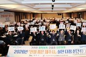 제이앤엠뉴스 | 제주시는 11일 메종글래드 제주에서 열린 한국외식업중앙회 제주특별자치도지회 제주시지부 정기총회에서 '친절 품은 제주시: 정직한 가격, 따뜻한 마음' 실천 다짐 선언식을 마련했다. 이날 행사에는 식품접객업소 영업주 등 300여 명이 참석했다. 선언식은 영업주 대표가 선언서를 낭독하며 시작됐으며, 이어 '친절은 심박ᄒᆞ게, 가격은 코삿ᄒᆞ게', '가격은 투명하게, 친절은 진심으로', '정직은 기본이우다, 친절은 정성이우다' 등 문구가 담긴 카드섹션 퍼포먼스를 통해 정직한 가격과 진심 어린 서비스 제공 의지를 다졌다. 참석자들은 "친절한 제주시, 우리가 만들쿠다!"라는 구호를 함께 외치며, 식품접객업소 영업주들이 친절 문화 확산에 앞장설 것을 결의했다. 김완근 제주시장은 "앞으로도 제주시 관광 이미지 개선과 관광객 신뢰 회복을 위해 '친절 품은 제주시' 만들기에 최선을 다하겠다"고 밝혔다.