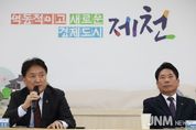 제이앤엠뉴스 | 김영환 충북도지사가 10일 제천시를 방문해 지역 현안 사업 현장을 점검하고 시민들과 직접 소통하는 시간을 가졌다. 김 지사는 먼저 '일하는기쁨' 사업의 제천 작업장을 찾아 단시간 근로를 희망하는 여성과 청년들에게 제공되는 공동작업 일자리 현장을 둘러봤다. 이 자리에서 일감 제공기관과 작업 참여자들을 만나 사업 운영 과정에서 겪는 어려움을 듣고, 일자리 사업의 안정적 운영과 지속 방안에 대해 의견을 교환했다. 이어 역전한마음시장을 방문해 제천역 주차타워 건립 예정지를 확인하고, 시장 상인회 관계자들과 만나 전통시장 활성화와 지역경제에 관한 다양한 의견을 나눴다. 또한 제천 청년센터에서는 청년 지원 프로그램과 시설 운영 현황을 점검한 뒤, 청년정책서포터즈 단원 등과 간담회를 열어 청년들의 지역 정착, 일자리, 창업 지원 등 체감할 수 있는 정책 방향에 대해 논의했다. 제천 남부사회복지관에서는 여성단체 임원 및 돌봄 관계자들과 만나 지역 돌봄서비스 확대, 여성의 사회참여, 복지정책 방향 등에 대한 의견을 들었다. 제천시청 청풍호실에서 열린 도정보고회에는 200여 명의 시민이 참석해 충청북특별자치도법 제정을 촉구하는 피켓 퍼포먼스로 행사가 시작됐다.