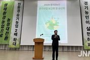 제이앤엠뉴스 | 경기도의회 농정해양위원회 방성환 위원장(국민의힘, 성남5)은 10일 YBM연수원에서 열린 ‘경기도친환경경농업인연합회 연구사업 보고회 및 송년회’에 참석해 축사를 전하며 친환경농업 발전을 위해 노력해온 농업인들에게 깊은 감사의 뜻을 전했다. 이번 보고회는 연합회가 2025년도 추진한 연구사업 성과를 공유하고 도내 친환경농업의 향후 방향을 논의하기 위해 마련된 자리로, 농업인과 연구진, 기관 관계자 등 300여 명이 참석했다. 방 위원장은 축사에서 “친환경농업은 탄소 저감과 토양·수질 개선 등 환경보전 효과가 크며, 지속가능한 농업의 미래를 여는 핵심 정책”이라고 강조했다. 이어 “친환경농산물은 도민의 건강뿐 아니라 학생 급식에 안전하고 품질 좋은 농산물을 공급하는 데 매우 중요한 기반”이라며, “경기도의회 농정해양위원회는 친환경농업이 더욱 확대되고 농가경영이 안정될 수 있도록 정책·예산 지원을 지속하겠다”라고 밝혔다. 또한 방 위원장은 이번 보고회가 한 해 동안의 성과를 공유하고 친환경농업의 발전 전략을 함께 모색하는 뜻깊은 자리라고 평가하며, “친환경농업은 경기도 농정의 중요한 축이