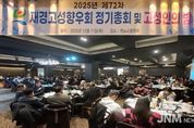 제이앤엠뉴스 | 재경고성향우회(회장 김영수)는 12월 11일, 서울시 성동구 레노스블랑쉬 연회장에서 2025년 제72차 정기총회 및 고성인의 밤 행사를 개최했다. 1부에서는 내빈 및 임원소개, 고향사랑기부금 기탁식, 감사패 및 공로패 수여, 2025년 결산보고 및 2026년 활동계획 보고 순으로 진행했다. 재경고성향우회 회장 이·취임식도 함께 어우러져 김영수 재경고성향우회장이 연임했다. 특히, 재경고성향우회 회원 일동이 고향사랑기부금 300만 원을 기탁하여 자리를 빛냈다. 재경고성향우회를 위해 수고한 이용찬 자문위원, 고영양 회화면 사무국장, 백현순 여성국장이 감사패를 받았으며, 2부에서는 고향의 정을 듬뿍 나누는 만찬을 함께 하며 향우 간 화합하는 즐거운 시간을 보냈다. 김영수 회장은 “저를 신임하고 연임해 주신 향우 회원 분들께 늘 감사드리고, 저희 회원 일동이 기탁한 고향사랑기부금으로 고향 고성군의 복리 증진을 위해 살뜰히 사용해 달라”라고 말했다. 류해석 부군수는 “재경고성향우회 정기총회 개최를 축하드리며, 재경고성향우회의 고향사랑과 성원에 깊이 감사드린다”라며, “앞으로도 변함없는 관심과