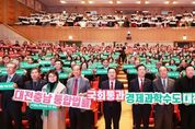 제이앤엠뉴스 | 대전시는 12일 시청 대강당에서 대전광역시의회, 대전충남 행정통합 민관협의체(이하 민관협)와 공동으로 “대전충남 행정통합 설명회 및 시민 한마음 촉구대회”를 개최하고, 대전충남 행정통합 특별법안의 조속한 국회 심의․의결을 촉구했다. 이날 행사는 최근 대통령이 행정통합의 필요성을 공식 언급하면서 통합 논의가 새로운 전기를 맞은 가운데 마련됐으며, 약 600명의 시민이 참석해 추진상황을 공유하고 통합 의지를 결집했다. 이창기 민관협 공동위원장은 지난 10월 2일 특별법안 발의 이후 경과를 소개하며, 통합으로 기대되는 효과를 설명했다. 이 공동위원장은 통합 시 인구 360만 규모의 초광역 혁신 클러스터 형성, 광역교통․생활권 확장 등 실질적인 변화를 강조하며 “행정통합은 수도권 일극체제에 대응할 충청권의 경쟁력 확보 전략”이라고 밝혔다. 설명회 후에는 통합을 촉구하는 퍼포먼스가 진행됐다. 이장우 대전시장, 조원휘 대전시의회의장, 이창기 민관협 공동위원장, 남재동 대전사랑시민협의회장이 관객석에서 행정통합을 촉구하는 구호를 선창하고 시민이 후창하는 카드섹션을 펼쳤으며, 이어 무대에서는 통합