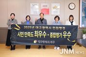 제이앤엠뉴스 | 대구 서구청은 대구시에서 실시한 2025년 민원행정 시민 만족도 조사에서 최우수, 종합평가에서 우수 기관에 선정됐다고 밝혔다. 대구시는 민원행정서비스 품질 향상을 위해 매년 ‘민원행정 시민 만족도 조사’를 실시하고 있다. 시민 만족도 조사는 지난해 10월부터 올해 9월까지 민원 서비스를 이용한 시민을 대상으로 민원 서비스 과정, 서비스 결과, 민원 응대 태도 및 전반적인 만족도에 대해 전화 설문의 형태로 이루어졌으며, 서구는 9개 구·군 중에서 가장 높은 종합만족도 96.8점을 얻어 ‘최우수’기관으로 선정되는 쾌거를 이루었다. 또한 서구는 대구시에서 매년 실시하고 있는 민원행정 종합평가에서도 3년 연속‘우수’기관으로 선정되는 영예를 안았다. 대구시의 민원행정 종합평가는 9개 구·군의 민원제도 운영 분야 14개 지표와 민원처리 현황 분야 8개 지표 등 총 22개 지표에 걸쳐 이루어진다. 서구는 안전한 근무환경 조성, 스마트 민원서비스 운영 지원, 고충민원 처리·관리 및 해결 노력 등 전반적인 분야에서 높은 평가를 받았다. 특히, 2일 이상 법정민원 처리 기간