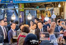 이재명 대통령 부부, 반송시장 찾아 상인들과 소통 "응원에 감사"